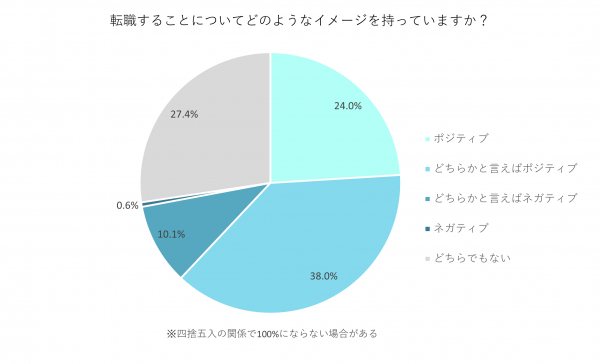 「ポジティブ」24%、「どちらかと言えばポジティブ」38%、「どちらかと言えばネガティブ」10.1%、「ネガティブ」0.6%、「どちらでもない」27.4%という結果でした。