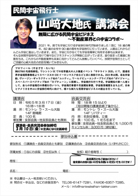 講演演題 「民間宇宙飛行士山崎大地氏講演会『無限に広がる民間宇宙ビジネス〜不動産業界との宇宙コラボ〜』」
