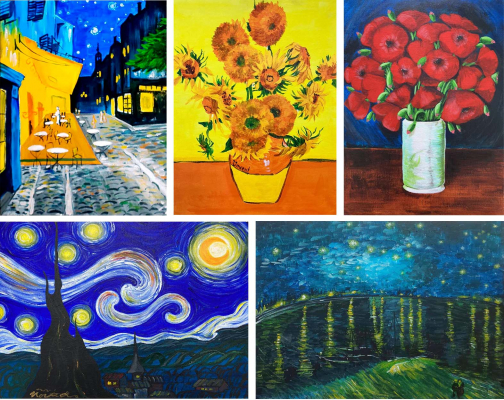 ■ゴッホの代表作を多数ラインナップ 「Art Wine Bar Nagoya(アートワインバー名古屋)」は、ゴッホの「夜のカフェテラス」のアートイベントを2023年5月27日から開始いたします。「ひまわり」・「赤いヒナゲシのある花瓶」・「星月夜」・「星降る夜」・「糸杉と星の見える道」などゴッホの代表作も多数ご用意しております。ご体験いただけるイベントは、ゴッホの他にモネ、ルノワールなど有名な画家から現代アートまで、様々なジャンルがございます。今後も追加イベントを続々更新予定です。お好きな絵画で、これまでにないリアルな絵画体験をお楽しみいただけます。