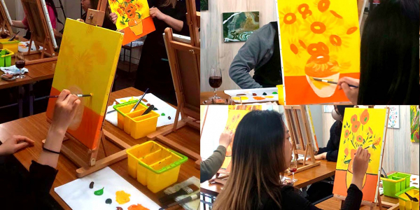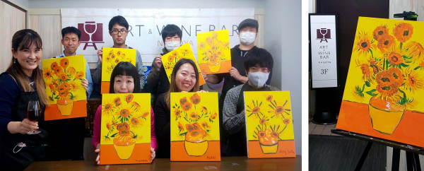 ☆憧れの「ひまわり」をゴッホみたいに描く夢☆ Art Wine Bar Nagoyaが叶えます。