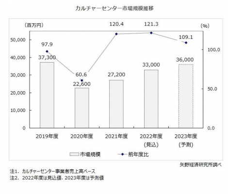 【矢野経済研究所プレスリリース】カルチャーセンター市場に関する調査を実施(2023年)〜2022年度のカルチャーセンター市場は前年度比21.3%増の330億円まで回復する見込み〜