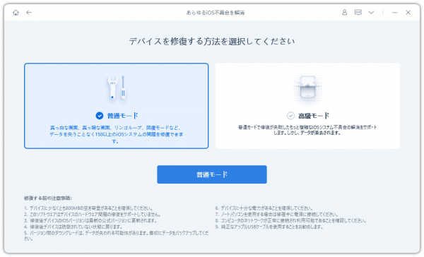 4.「修復開始」をクリックして、iPhoneの修復を開始します。