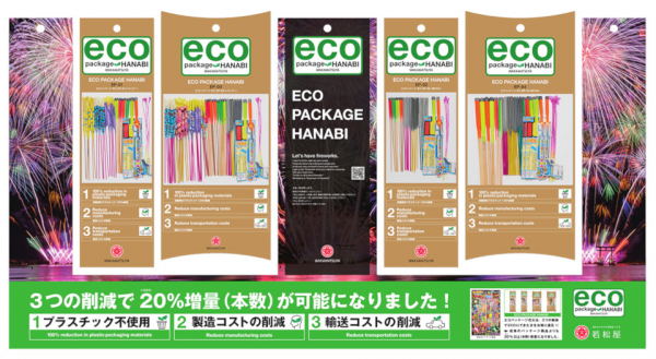 SDGsな商品で消費者も得をするサステナブルな新商品。 「エコパッケージ花火」発売! 今までのデザインイメージを捨て、見た目もECOに挑戦
