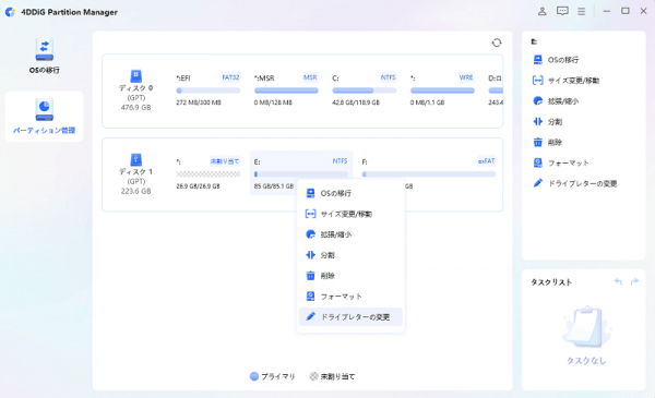 4DDiG Partition Managerは、オールインワンのパーティション変更ソフトです。Windows10のパーティションを拡張できないときでも、パーティションを柔軟にサイズ変更/分割/作成/削除/フォーマットできます。