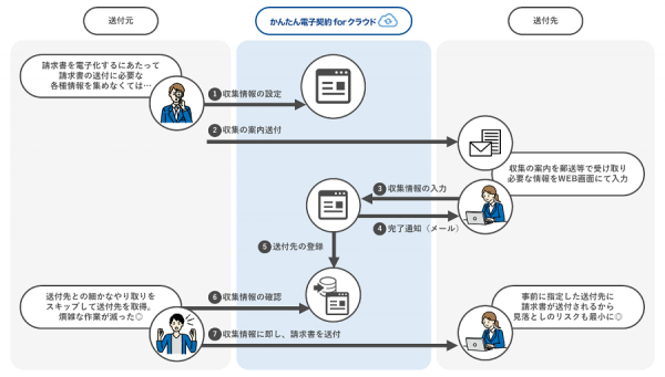 「かんたん電子契約 for クラウド」は、電子契約・電子帳簿保存法対応の書類保管・請求書などの電子配信が行えるクラウドサービスです。