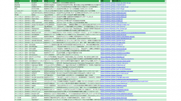 ビジネス活用向けChatGPT連携サービスベンダー一覧(一部)
