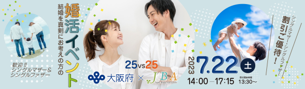 【大阪府×JBA】7/22(土)婚活イベント開催\歓迎!シングルマザー・シングルファザー/