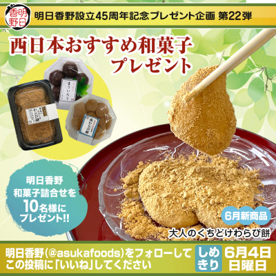 6月新商品を含む西日本のおすすめ和菓子を和菓子の日にプレゼント! 明日香野45周年キャンペーン第22弾
