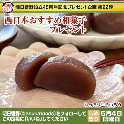 2023年5月22日より、45周年キャンペーンの第22弾「西日本おすすめ和菓子プレゼント」を開始しました。