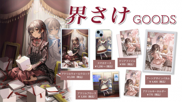 『界さけ』さんの素敵なイラストを使用したスマホケース・アクリルブロックなど計6種のオリジナルグッズは、2023年9月19日までの期間限定で販売しております。