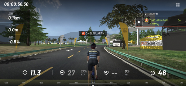 バーチャルサイクリングは、実際に自転車をこぐことで画面内のアバターがコースの勾配度合いや、
