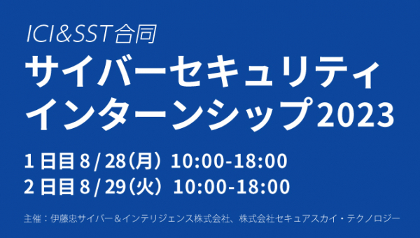 伊藤忠サイバー&インテリジェンス株式会社(本社:東京都港区 代表取締役:浦上 善一郎 以下、ICI)と株式会社セキュアスカイ・テクノロジー(本社:東京都千代田区 代表取締役:大木 元 以下、SST)は、学生向けに情報セキュリティを学び&体験する合同インターンシップを2023年8月28日から開催いたします。参加募集は、2023年7月より開始いたします。