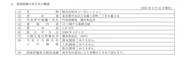 株式会社Dコーポレーションとの業務提携に関するお知らせ