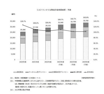 【矢野経済研究所プレスリリース】ラストワンマイル物流市場に関する調査を実施(2023年)〜2022年度のラストワンマイル物流市場規模は前年度比105.0%の2兆9,110億円〜
