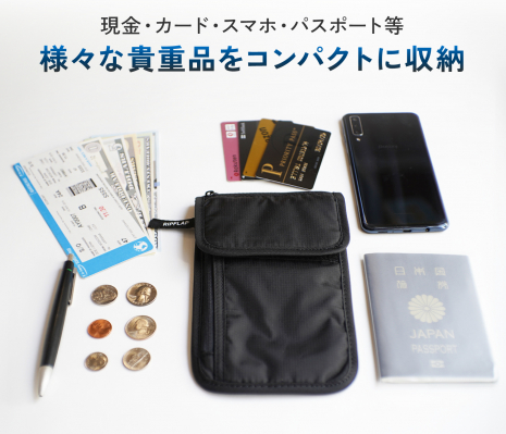 パスポートの他にもクレジットカード、スマートフォン、現金、チケットなどを安全にコンパクトに持ち歩くことができます。貴重品をひとまとめにできるので紛失の予防にもなります。