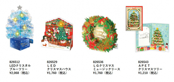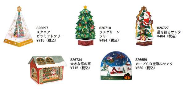 インテリアとして飾れるタイプの立体カードは、人気のツリー型を中心にバリエーション豊かに開発。可愛らしいおうち型など1点1点の存在感が際立つラインナップです。