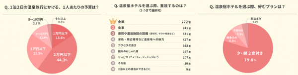 ―温泉女子旅で選ばれやすいのは「予算1〜3万円」で「夕・朝2食付き」のプラン