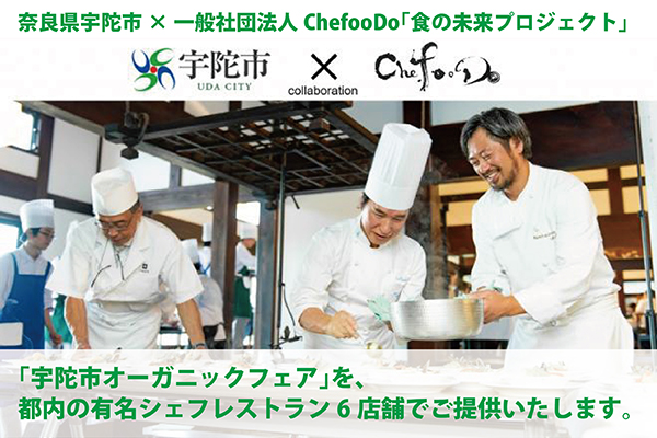 有名シェフや観光事業者と連携し、宇陀市の「知名度向上・観光活性化・ふるさと納税増収化・農業関係者の活性化」に向けた「オーガニックビレッジ宣言 1 周年記念公民連携事業」として、「宇陀市オーガニックフェア」をはじめとした「食の未来プロジェクト」を実施します。