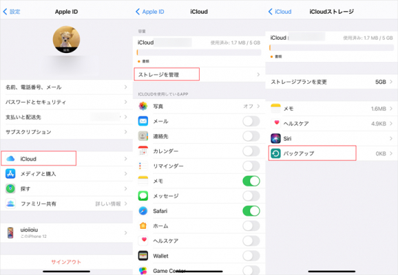 2-iCloudの「ストーレッジを管理」をクリック。