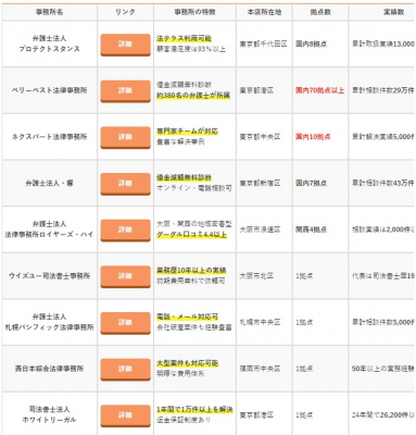 債務整理に強いおすすめ弁護士に関する早見表を作成・公開