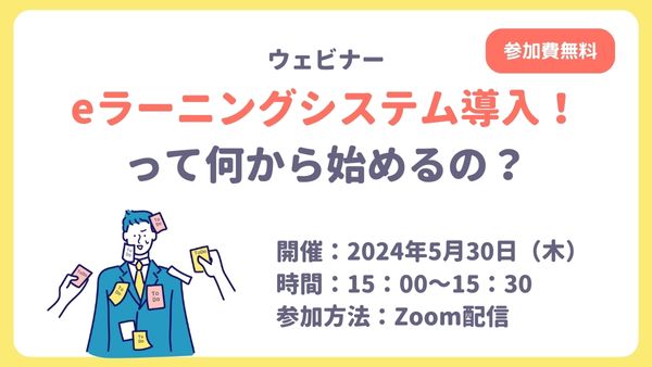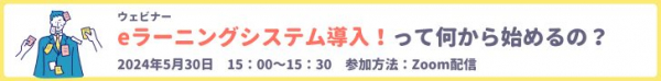 この度、ウェビナー「eラーニングシステム導入!って何から始めるの?」(参加費無料)を、2024年5月30日(木)に開催いたします。