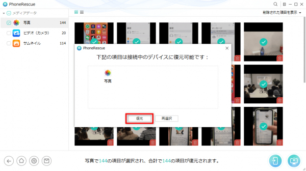 完全に削除された写真を復元することは、一般的には難しいですが、PhoneRescue for iOSをを利用すると、完全削除された写真をもとに戻すことはできます。PhoneRescue for iOSは、iOSデバイスから削除されたデータを回復するためのソフトウェアです。このソフトウェアを使用すると、iPhone、iPad、iPod touchから削除された写真、メッセージ、連絡先、音声メモ、アプリデータなどのさまざまな種類のデータを回復することができます。