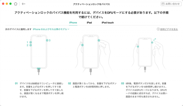 Step.4 案内に沿って、iPhone/iPadをDFUモードに入ってください。