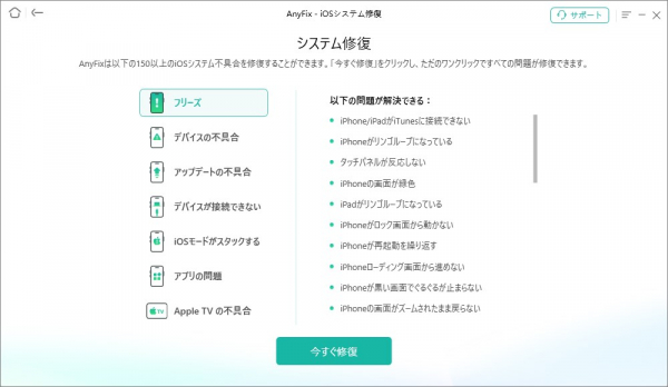 AnyFixとは、さまざまな高度なテクノロジーを採用しあらゆるシナリオでiOS/iPadOS/tvOSの150種以上の不具合を即座に修復することができる安全な専用ツールです。AnyFixを利用して、iPhoneのロック画面だけ反応しない問題を迅速に解決しましょう。