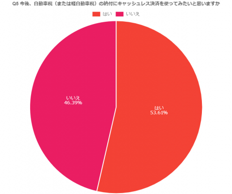 さらに、2024年は自動車税の納付にキャッシュレス決済を利用しないと答えた人の半数以上が、自動車税のキャッシュレス決済に関心を示しています。