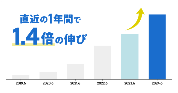 2019年にリリースした法人版サービス「flier business」の中で、IT業界は右肩上がりの導入となり、直近1年間の累計導入社数は1.4倍の伸びとなりました。専門的なIT系の知識やスキルを日々キャッチアップといった自己研鑽を求められる業界であるからこそ、flier導入にも積極的であると読み取れます。