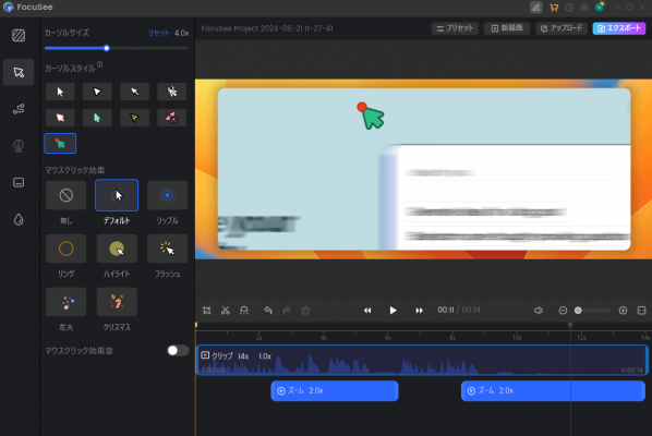 Step 3画面を録画すると、マウスをクリックした場所が画面上で自動的にズームインされます。