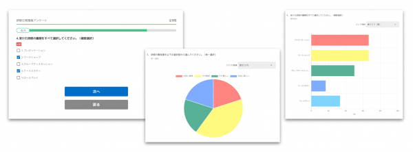 質問内容や形式を自由にカスタマイズし、目的に応じたアンケートを作成することができます。選択式や自由記述式など、多様な質問形式で設定が可能です。