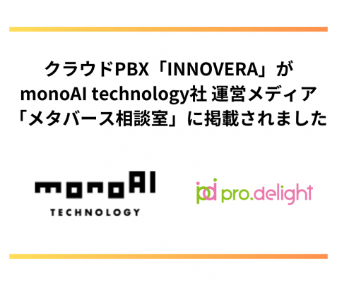 電話のDXを推進する株式会社プロディライト(大阪府大阪市:代表取締役社長 小南 秀光、証券コード:5580、以下プロディライト)が提供するクラウドPBX「INNOVERA」が2024年7月9日、monoAI Ttechnology株式会社(兵庫県神戸市:代表取締役社長 本城 嘉太郎、証券コード:5240、以下monoAI Ttechnology)が運営するWebメディア「メタバース相談室」に掲載されました。