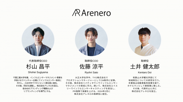 また、アレネロには当社がリードインベスターとして出資することに合わせ、エイベックス株式会社 元代表取締役副社長である千葉龍平氏が株主として参加することになり、アレネロの経営力に一層厚みが生まれました。
