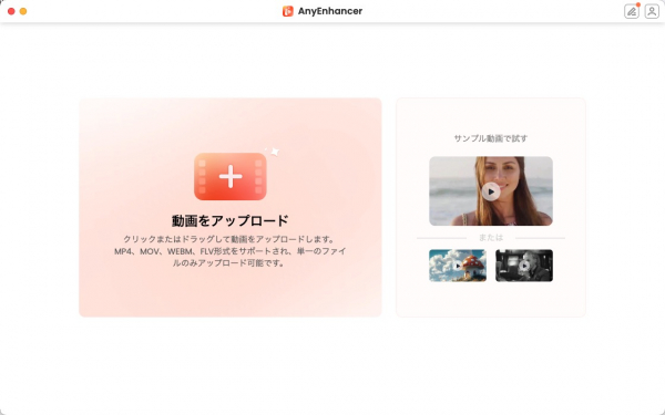 Step1.コンピューターでAnyEnhancerをインストールして起動させます。そして、フレームレートを変換する必要がある動画をアップロードします。
