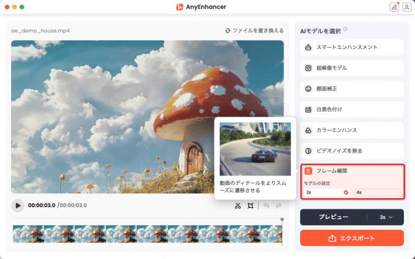 AnyEnhancerは動画を高画質化するソフトですが、しかし、豊富な機能を持っています。動画のフレームレートを変換する機能もあります。そして、専門知識が不要で、どのように動画のフレームレートを変換するか分からない初心者でも、簡単な操作で楽に動画のフレームレートを変換できます。