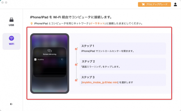 AnyMiroでiPhoneの画面をミラーリングするステップ: