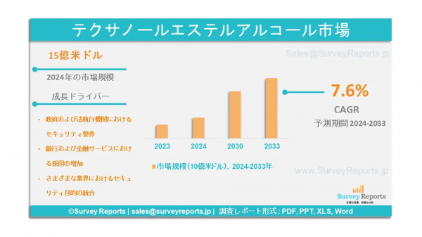 テサノールエステルアルコール市場:需要の高まり、トップ企業、トレンド、シェア、業界規模、成長、機会、2033年までの予測
