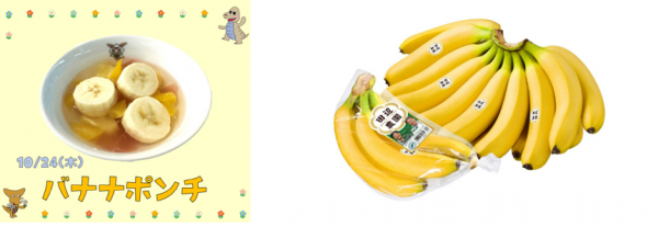 ANAフーズは、特別給食メニュー「バナナポンチ」に使用する田辺農園バナナを提供しました。大阪府守口市の学校法人山添学園 幼保連携型認定こども園 御幸幼稚園・さくらんぼ保育園では、10/24(木)に田辺農園の農園主・田邊正裕氏が来園し、環境を守りながらバナナを育てる方法についてお話がありました。子どもたちから「バナナの黒い点々は何ですか?」、「バナナの筋は何のためにありますか?」といった質問に対し、田邊氏より「バナナの黒い点々は、バナナが甘くなったサイン。」、「バナナの筋は、栄養を運んでいる管だよ。」とわかりやすく説明をしました。そのあと、「バナナポンチ」を食べ、おいしく、楽しくSDGsについて学びました。