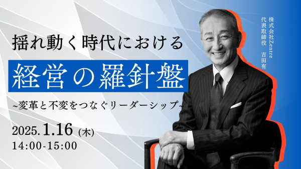 本セミナーでは、株式会社Zentreの代表取締役である吉田有氏をお迎えし、東洋哲学の「不易流行」をベースに変化と不変のバランスを取りながら経営課題に取り組む方法論を探求します。さらに、Zentreが提唱する禅的アプローチを交え、エグゼクティブに向けた具体的な課題解決策をご提供します。
