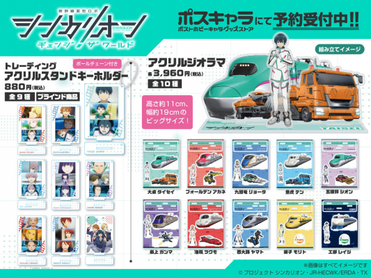 ECサイト「ポスキャラ」で発売するTVアニメ『シンカリオン チェンジ ザ ワールド』 ライセンスグッズは、タイセイ、アカネ、リョータが10cmのキュートなぬいぐるみになった「ちみぬいず」(全3種)、運転士と新幹線&エルダビークルを高さ約11cm、幅約19cmの大ボリュームで並べて飾れる「アクリルジオラマ」(全10種)など、全71アイテム。 各アイテムの詳細は、ECサイト「ポスキャラ」(https://www.posthobby.com/SHOP/383419/383400/list.html)でご確認ください。