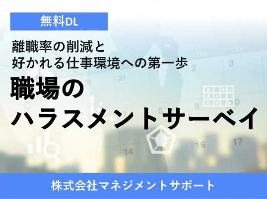 業歴33年、お取引先数1万社突破、研修リピート率92%を誇る、株式会社マネジメントサポートが提供する無料ダウンロード可能なアンケート・サーベイのご案内です。