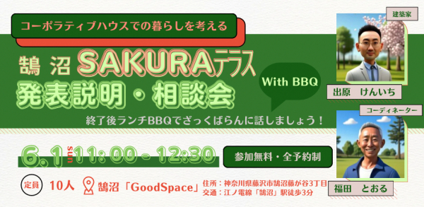 湘南エリアで海辺の街暮らしを提案、コーポラティブハウスの企画・募集販売をしているくらす株式会社(本社:神奈川県藤沢市 代表取締役社長:福田徹)は、2025年6月1日(日)コーポラティブハウス『Sakuraテラス』の募集販売をスタートする為「第1回参参加募集説明・相談会」を開催します。