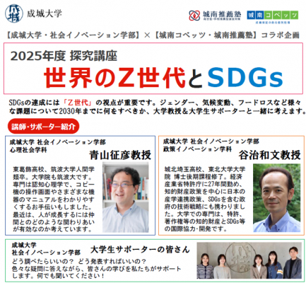 成城大学教授によるゼミ形式の授業が「城南コベッツ」「城南推薦塾」で受けられる!未来を切り拓く力を養う、高校生のための「探究講座『SDGsで日本を変える』」を5〜7月の全3回にて開催。