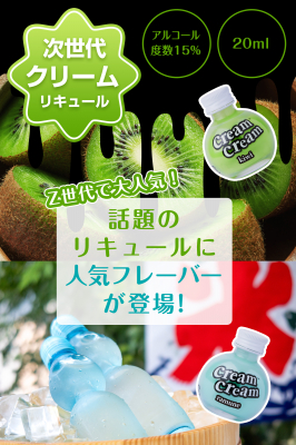 お酒ブランド【cream cream(クリームクリーム)】の新フレーバー「キウイ」、「ラムネ」の2種類を発売開始いたします。