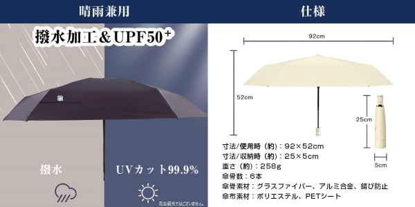 晴雨兼用のため、雨の日はもちろん日傘としても活躍。