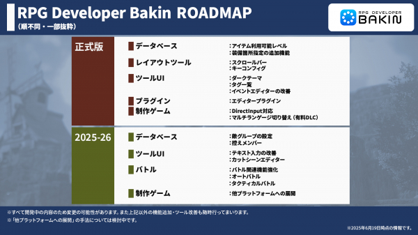 公式サイト「ロードマップ」ページ:https://rpgbakin.com/roadmap