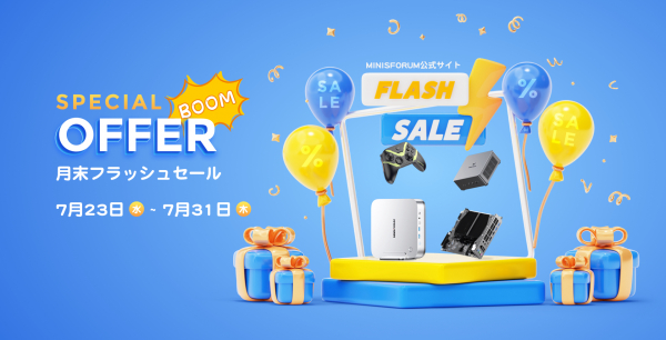 MICRO COMPUTER (HK)TECH LIMITEDが運営するミニPCメーカーのMinisforum(ミニーズフォーラム)は、Minisforum日本公式サイト(https://store.minisforum.jp/)にて、7月23日から7月31日まで月末フラッシュセール(https://bit.ly/452AUqW)を開催いたします。