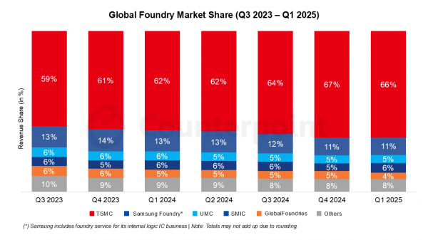半導体技術の進歩とプロセスの複雑化に伴い、カウンターポイントリサーチのグローバルファウンドリーウェーハ生産能力(ノード別)トラッカーによると、TSMCの2nmノードの価格はウェーハ1枚あたり3万ドル以上に達すると予測されています。供給制約と2nmノードの旺盛な需要により、TSMCは大幅な値引きを行うための強力な価格決定力を有しています。一方、サムスンは主要顧客の確保に課題を抱えています。サムスンファウンドリーは、ある程度の利益率を犠牲にして規模を確保し、顧客基盤を拡大することで、先端ノードの立ち上げに向けた顧客の信頼を獲得し、特別かつ非常に競争力のある価格設定でリードしてきたと考えられます。先端チップの製造から得られる実践的な経験は、ファウンドリー市場において、企業の将来の成長と競争力を高めるために特に不可欠です。