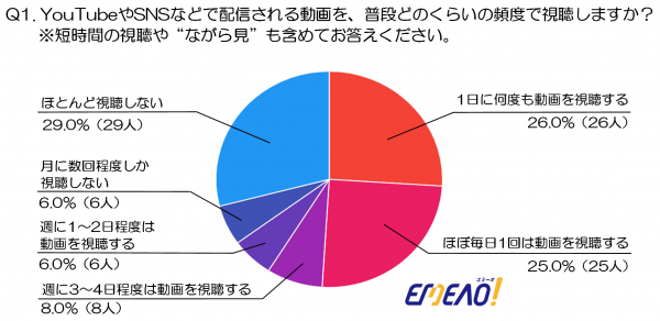 調査結果1:YouTubeやSNSなどで配信される動画を、普段どのくらいの頻度で視聴しますか?※短時間の視聴や“ながら見”も含めてお答えください。